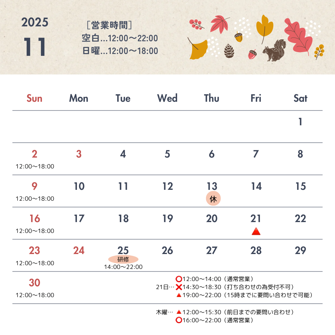 (日曜日:12:00〜18:00)